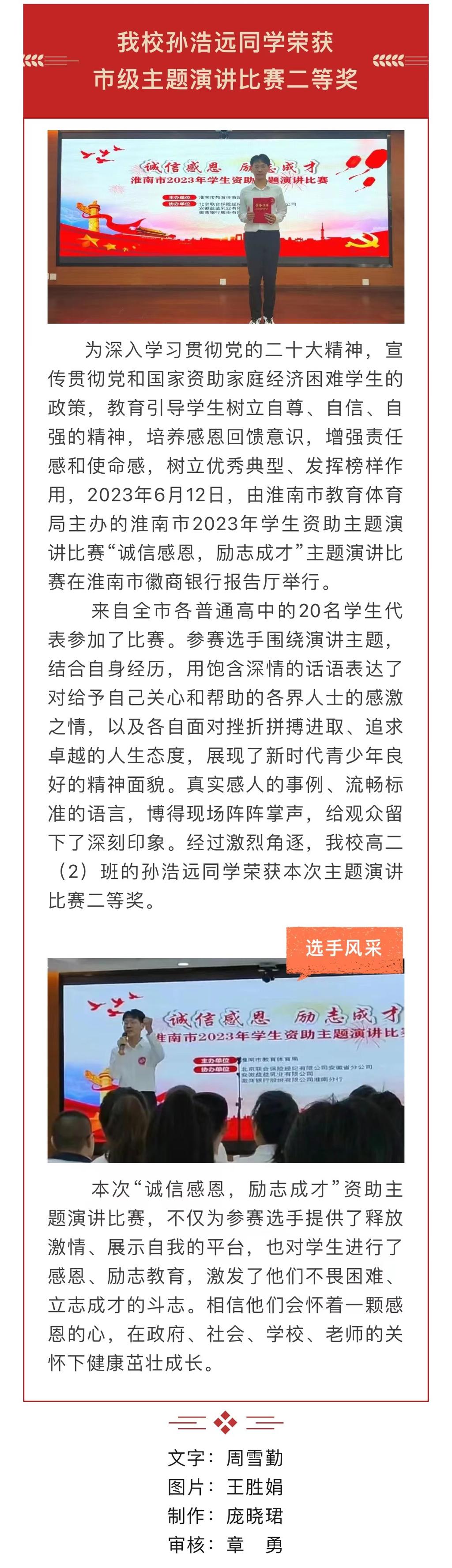 我校孫浩遠(yuǎn)同學(xué)榮獲市級(jí)主題演講比賽二等獎(jiǎng)